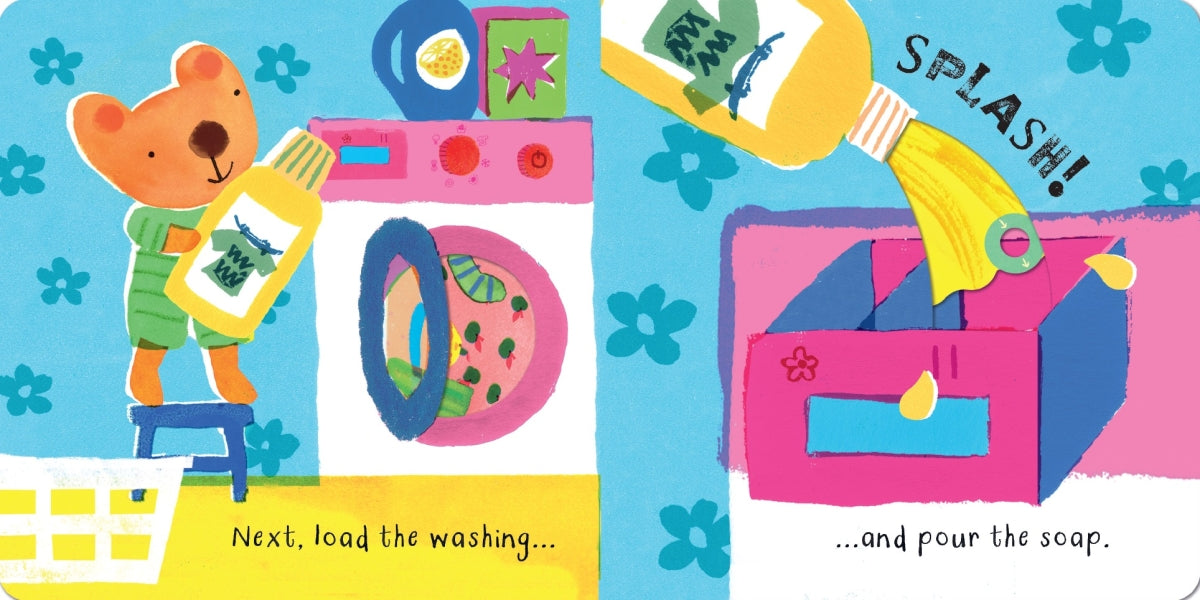 Follow Bear and his friend Croc around the house as they do the laundry, and show your little one all the steps of household chores and a charming, engaging way.