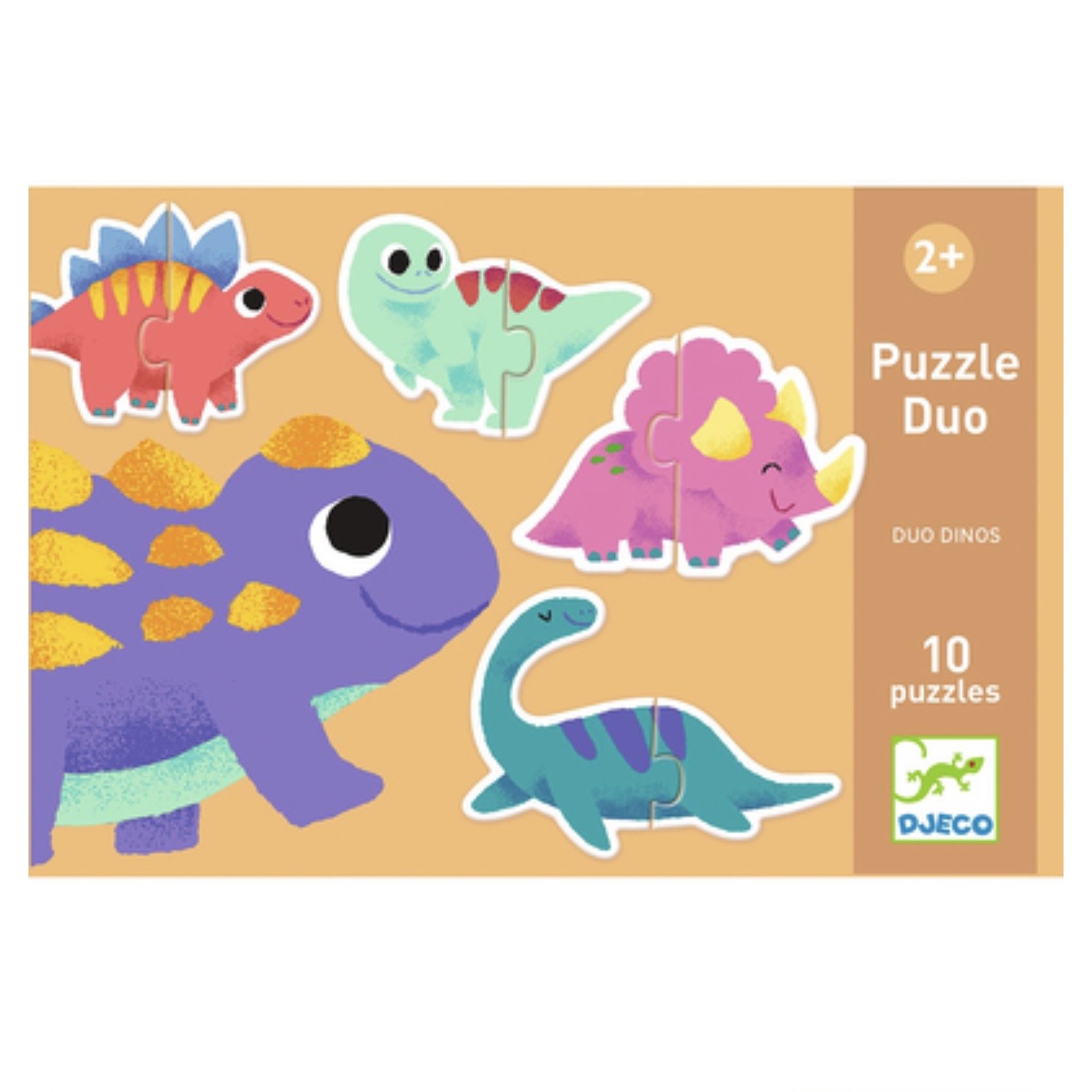 An introduction to shape matching puzzles with a theme that kids simply love. Puzzle Duo Dinos is an educational puzzle where children match 2 parts of the body of an adorable dinosaur. Two-part and three-part puzzles and fun, simple idea association game